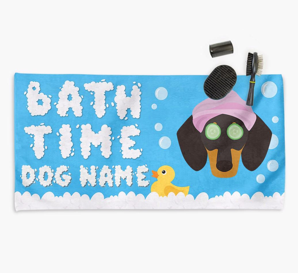 Does Your Dachshund love bubble baths? Once they've bathed, take their bathtime experience to the next level by wrapping them up in their very own towel, that's personalized just for them.
