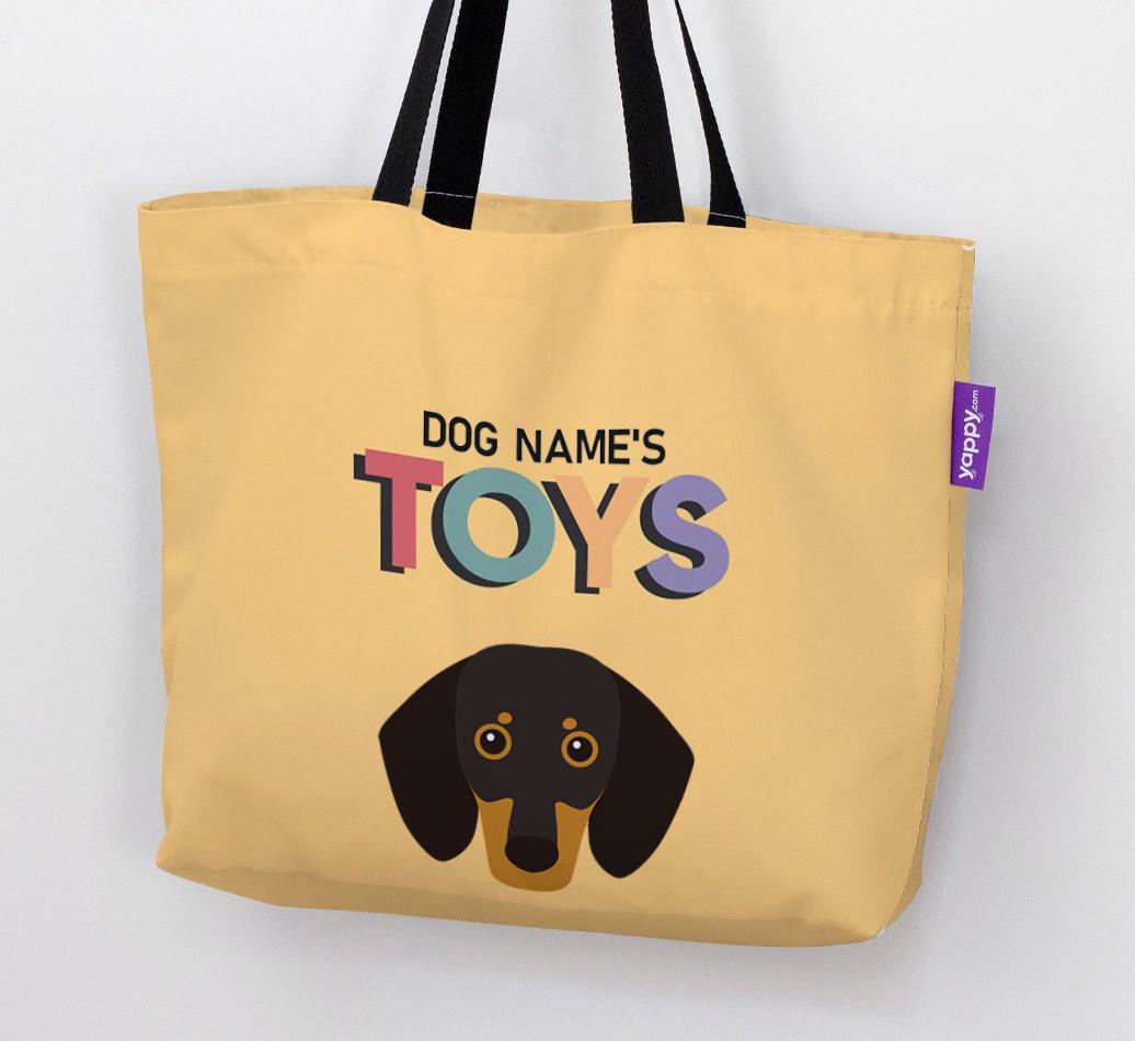 Don’t worry, we’ve got you covered with this pawsonalized canvas bag made for your Dachshund’s toy collection!
