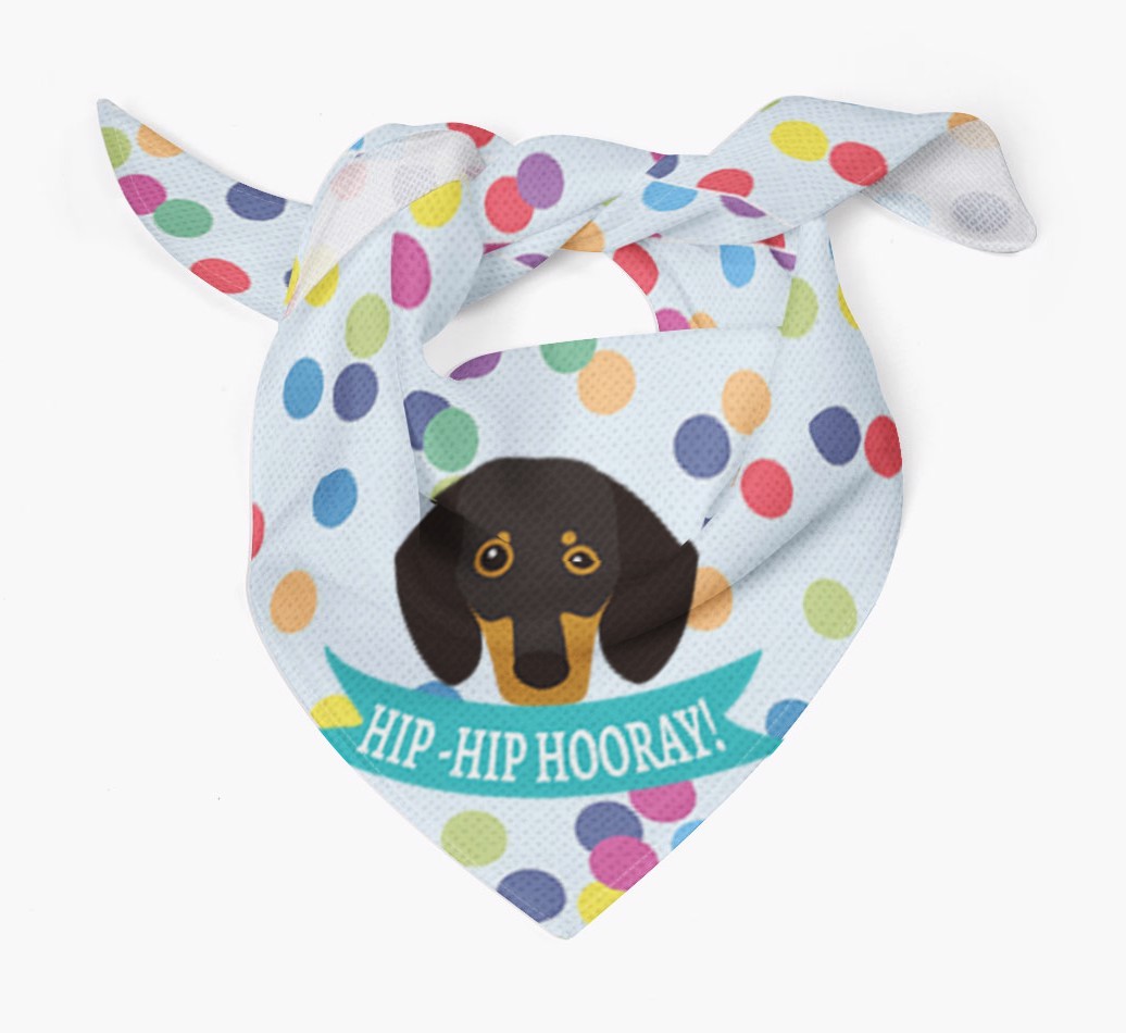 Featuring our famous Dachshund icon and the words ‘hip-hip hooray!’ printed upon a colorful confetti background, Your Dachshund is sure to look pawty ready wearing this bandana.