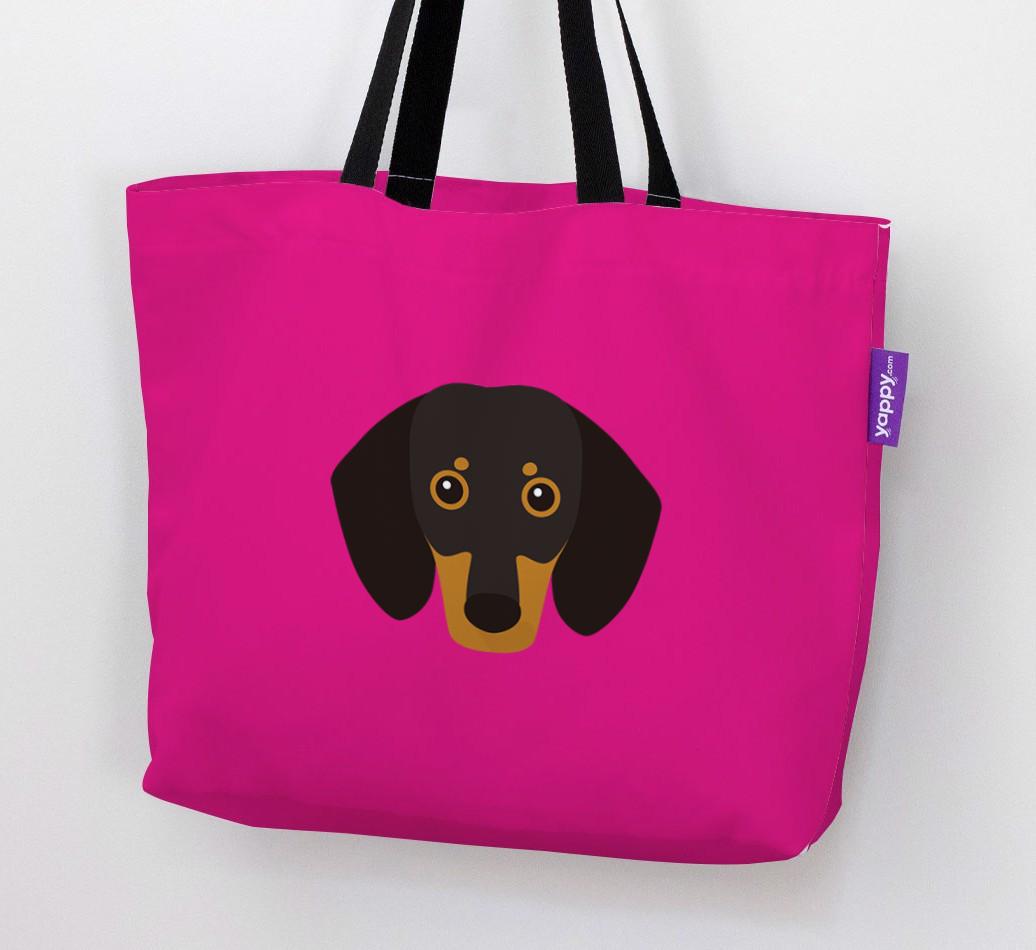 This Canvas Bag features an exclusive Dachshund icon printed on a bright, bold background.