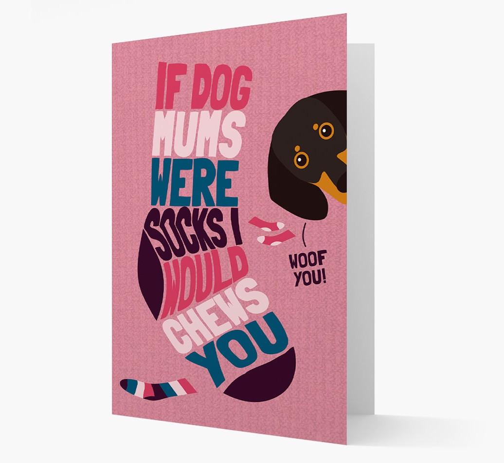 This comical card is pawfect for the Dog Mom who's pawrent to a sock-loving Dachshund.