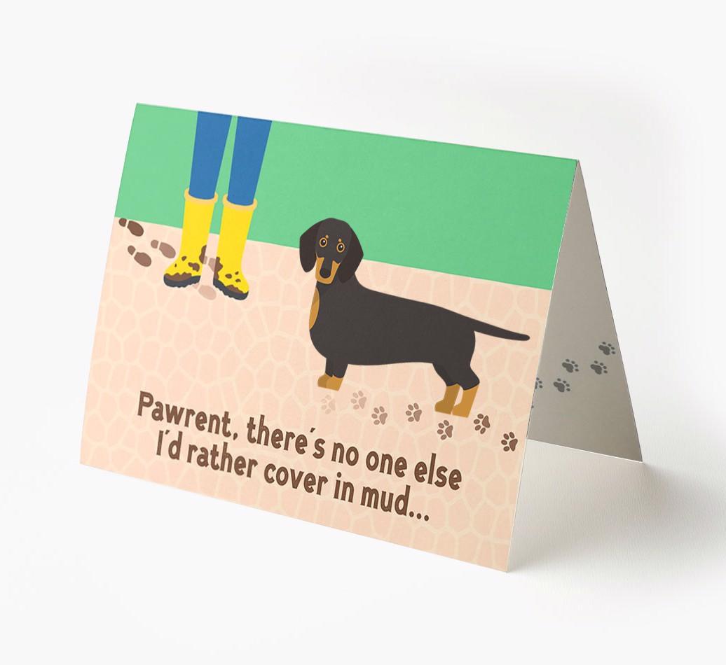 This comical card is sure to delight Dachshund's pawrent (without getting muddy), especially as it stars their Dachshund's cheeky icon.