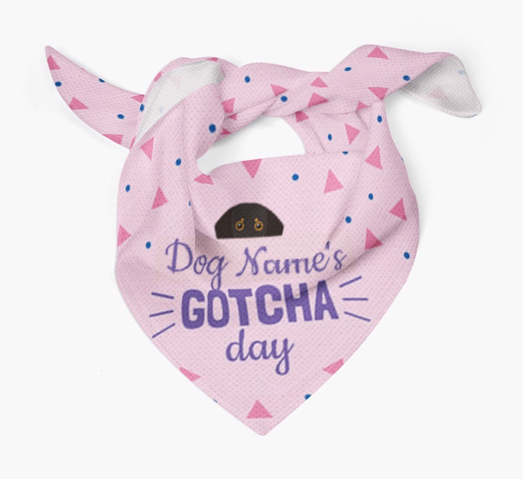 Personalized with Dachshund’s name and an adorable Dachshund icon, this bandana is tailor made just for Dachshund so they can feel wagnificent on their Gotcha day.