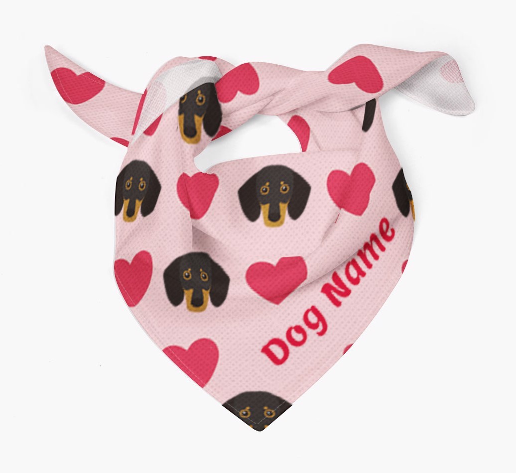 Featuring a pattern of love hearts and Dachshund icons, this cute bandana is a woofly way for Dachshund to dress up and share the puppy-love!
