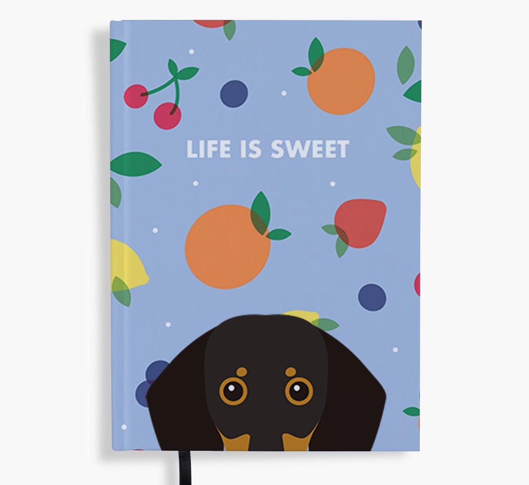 Featuring a seriously scrumptious fruity pattern, this vibrant notebook will add a lovely pop of color to your desk, plus as it’s personalized with your Dachshund’s cute icon, you’ll fur-ever be reminded of sweet times together.
