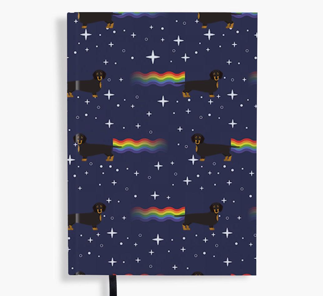Featuring your cheeky Dachshund, lots of twinkling stars and available in a range of bold colors, this fun notebook is truly out of this world.