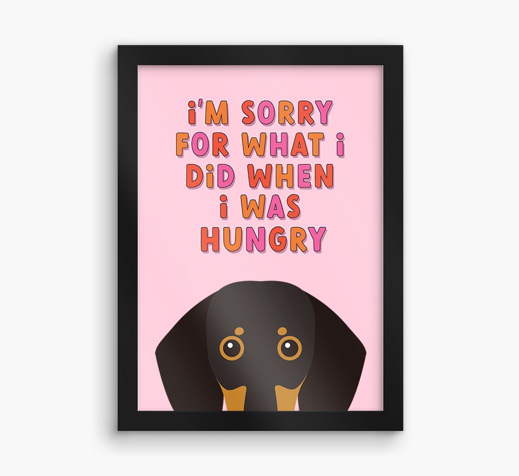 Does Dachshund turn into a hangry hound when they're hungry? Can you relate? With this print in the home, at least you'll always be reminded of how sorry your Dachshund is for their actions when they were hungry. Just look at this print and your Dachshund's cute face and all will be fur-given... Hopefully.