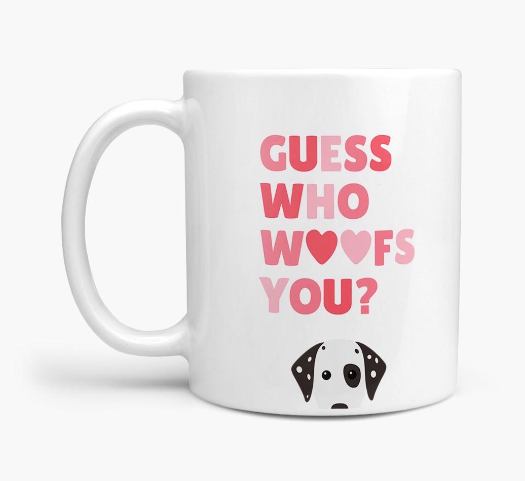 Personalized with Dalmatian's cute face, this adorable mug is perfect for showing off the one who "woofs" you - how sweet!