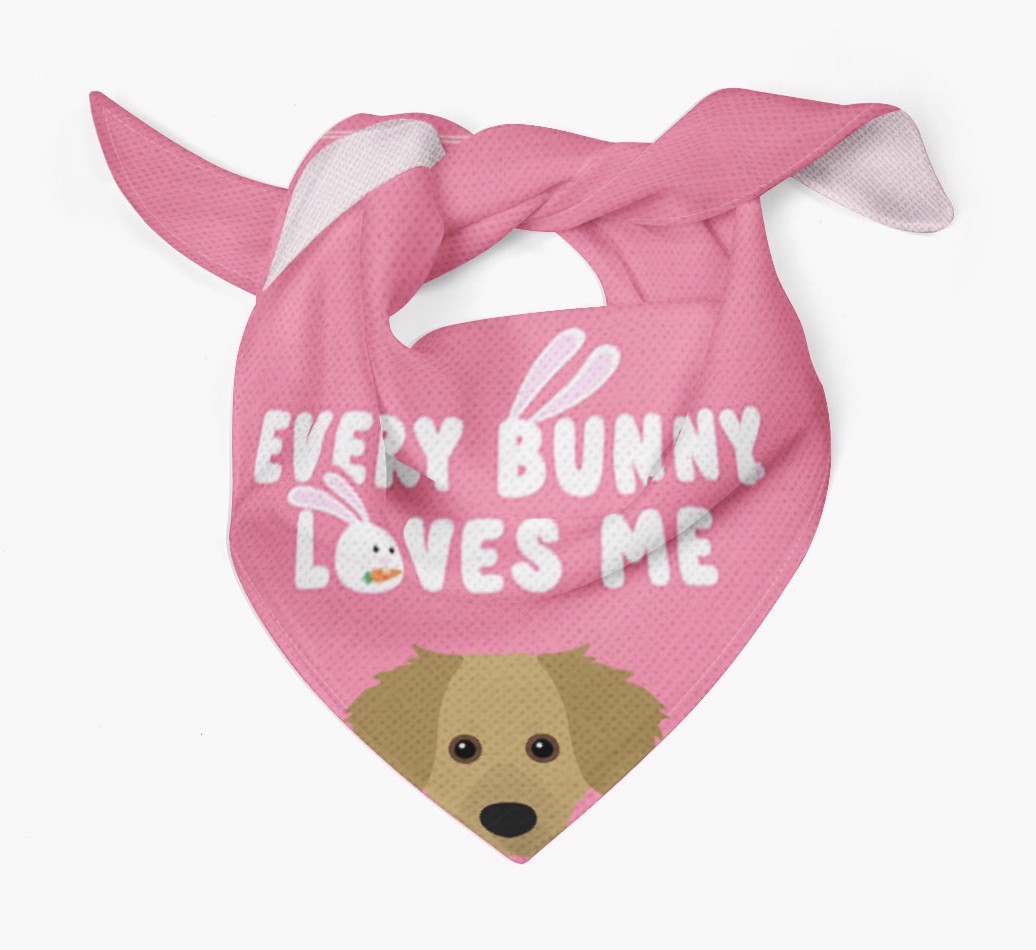 Tailored with the fabulous saying: 'Every Bunny Loves Me', this bandana is the perfect addition to your Dameranian's wardrobe! Available in four egg-ceptional colors and personalized with your Dameranian's icon, this is the perfect pawchase for Easter!