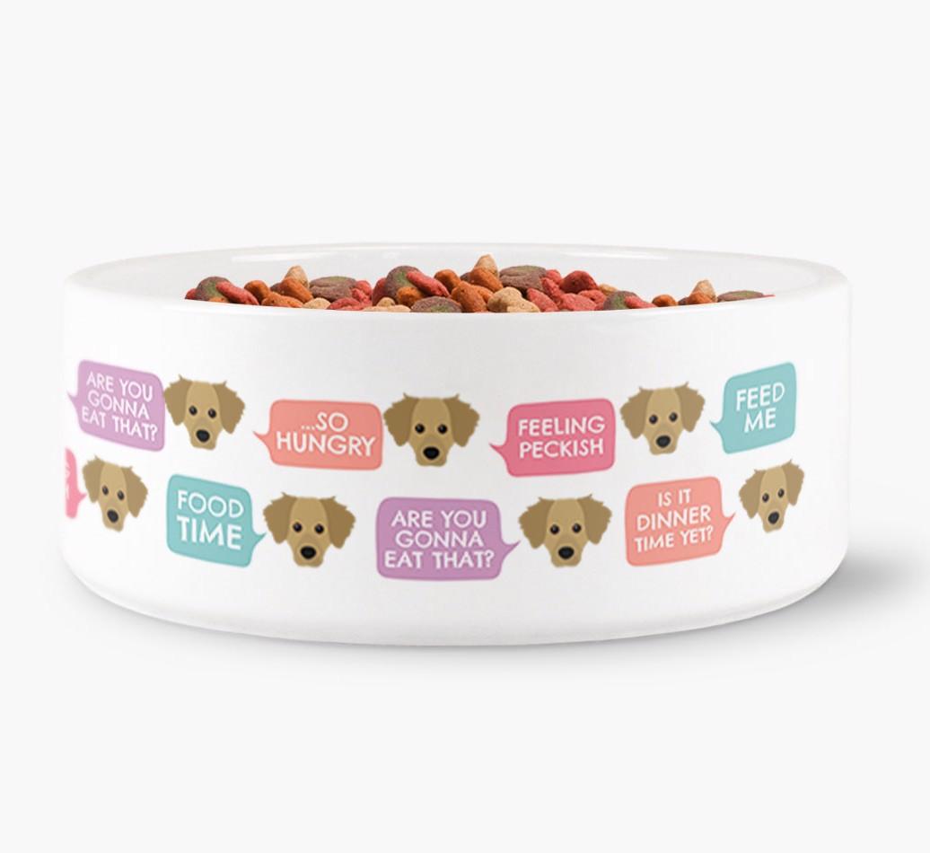 Printed front and back, this bowl features our exclusive Dameranian icons saying exactly what’s on their mind each time they step foot paw in the kitchen. Luckily for your pooch, they’ll have their very own special bowl of food to tuck into!