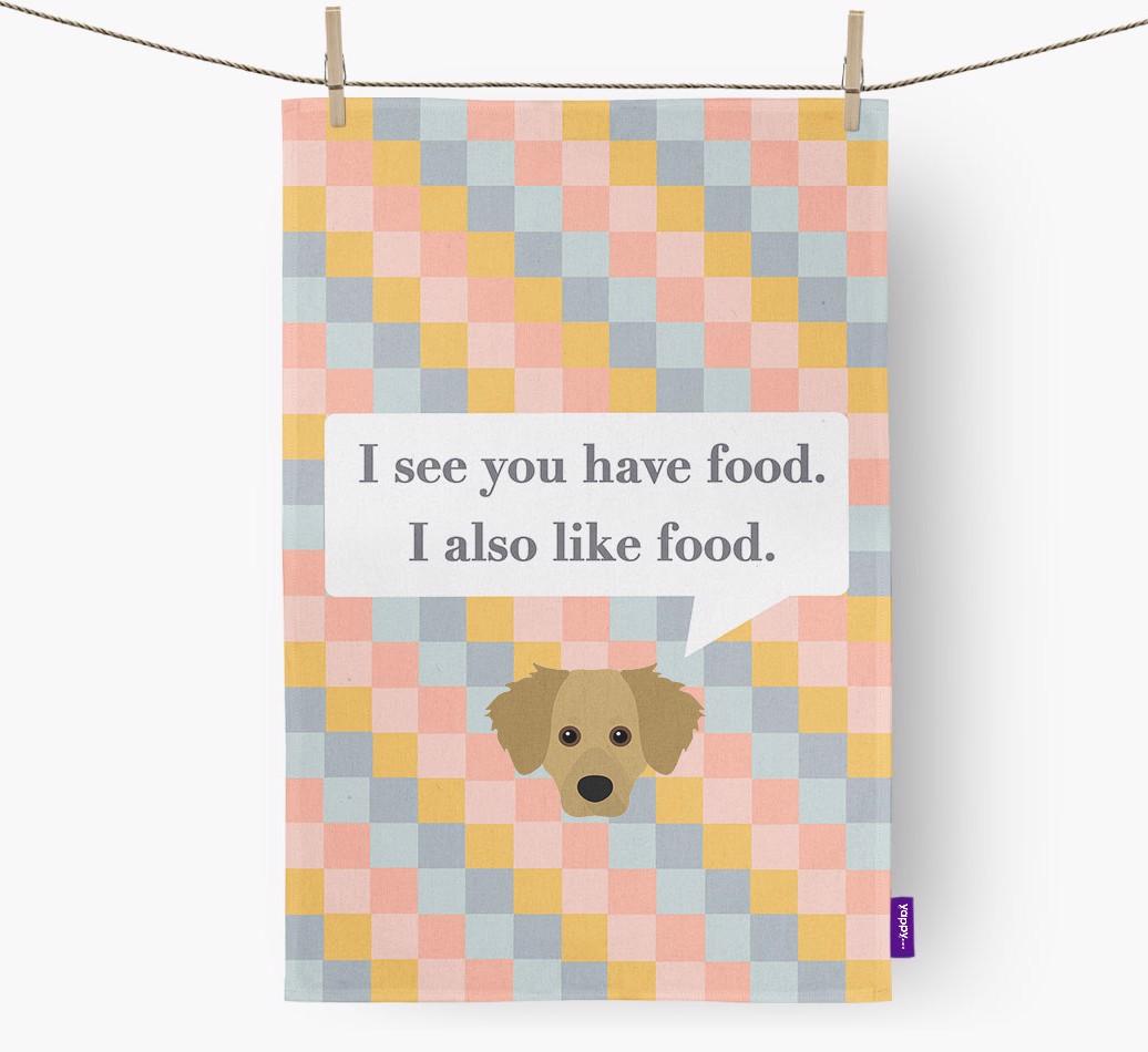 If your Dameranian is a full time snack machine, this dish towel may be the ideal way to warn your guests.