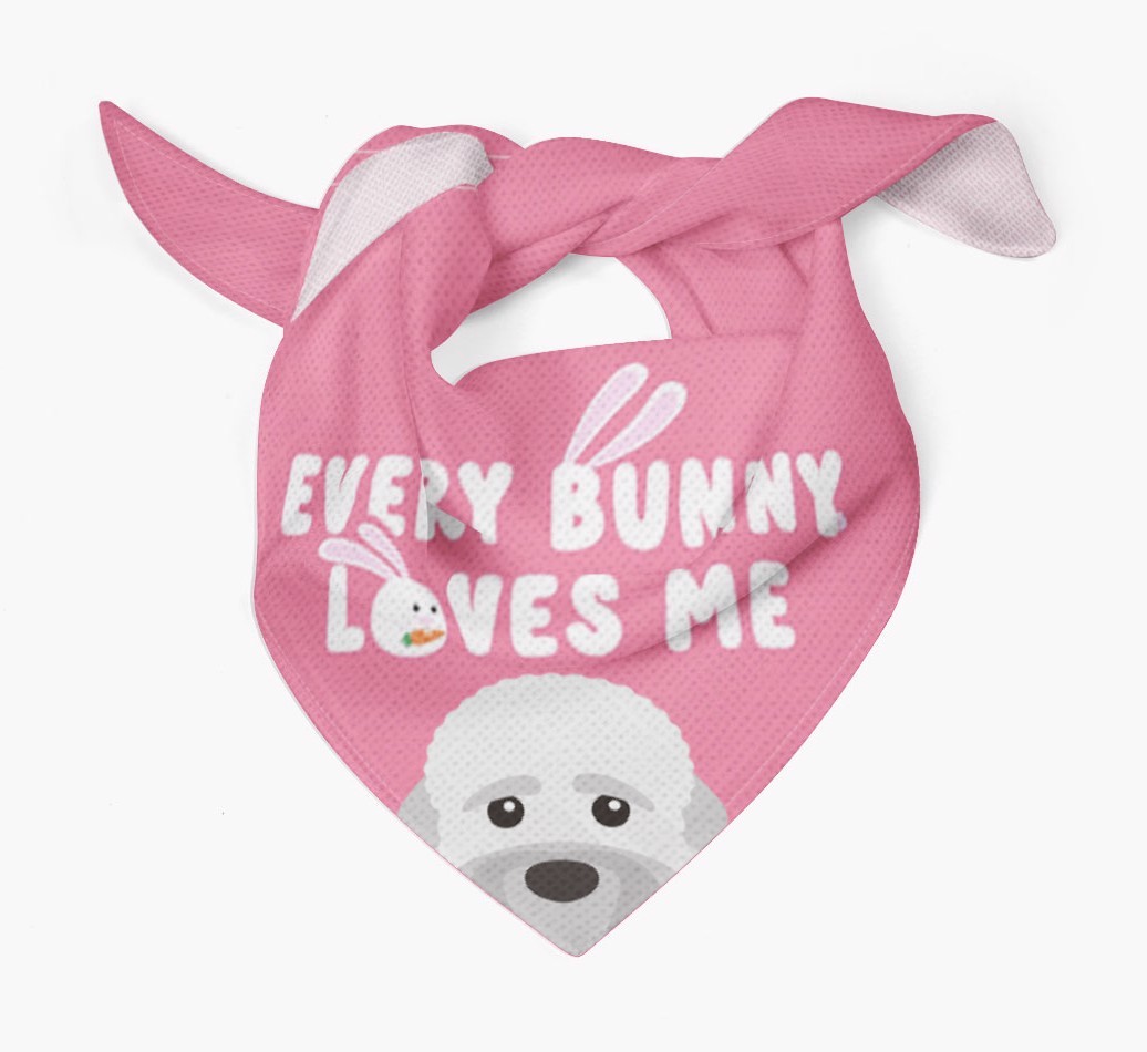 Tailored with the fabulous saying: 'Every Bunny Loves Me', this bandana is the perfect addition to your Dandie Dinmont Terrier's wardrobe! Available in four egg-ceptional colors and personalized with your Dandie Dinmont Terrier's icon, this is the perfect pawchase for Easter!