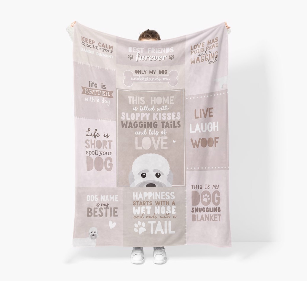 Made from luxuriously soft sherpa fleece material, this blanket is guaranteed to keep you cosy and snug, pawfect night with Dandie Dinmont Terrier.