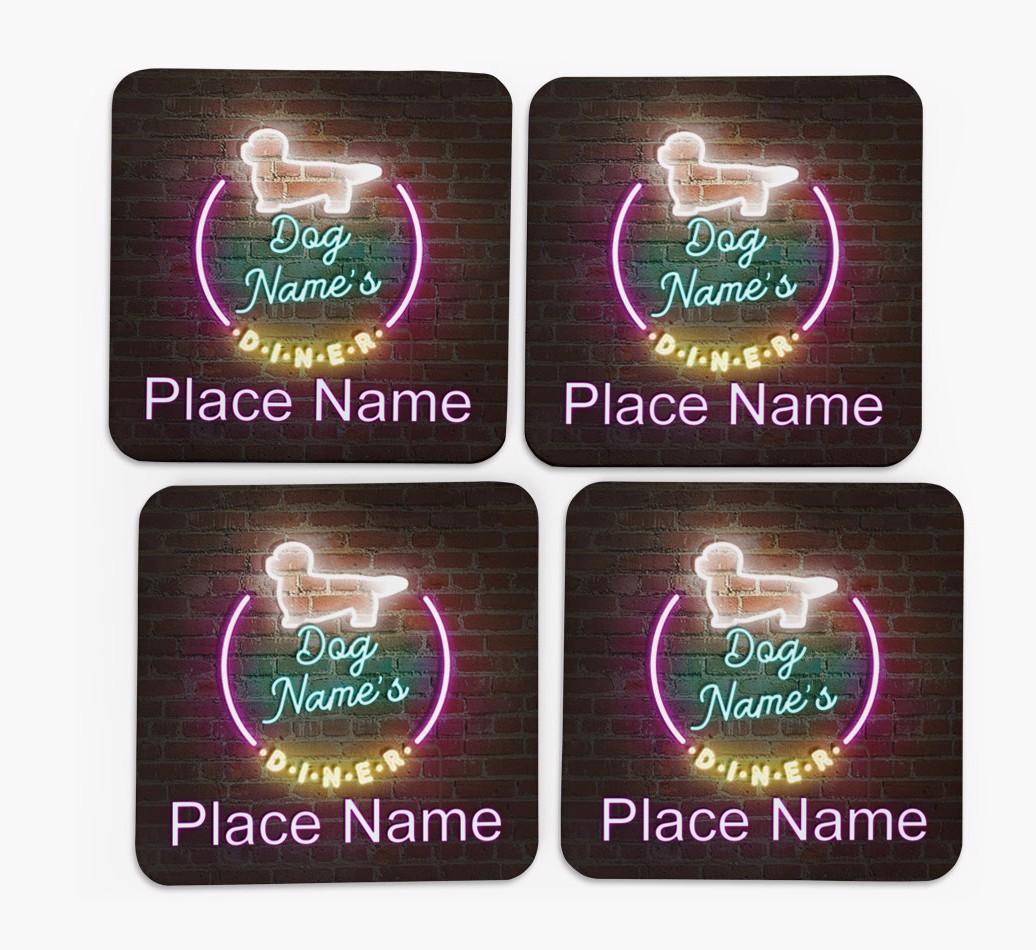 'Neon Lights Diner' - Personalized Dandie Dinmont Terrier Coasters (Set of 4)