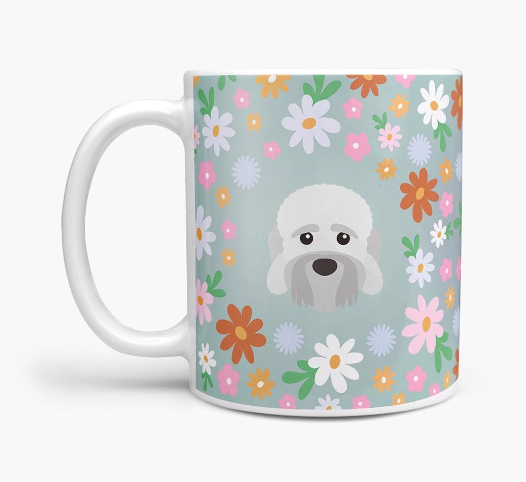 Featuring a colorful bunch of flowers, this mug is printed with the words 'woofly grandma' on one side of the mug and your Dandie's cute icon on the other. Bloomin' lovely!
