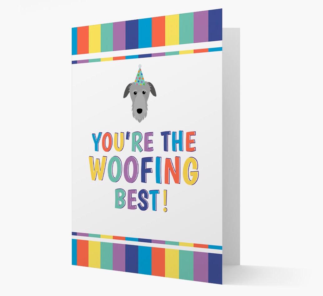 Featuring your chosen Deerhound icon donning a pawty hat, this card is sure to go down a woofing storm!