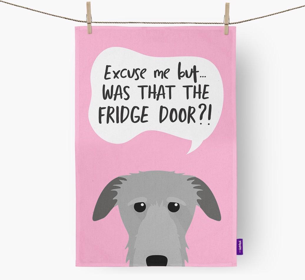 'Was That The Fridge Door?!' - Personalized Deerhound Dish Towel