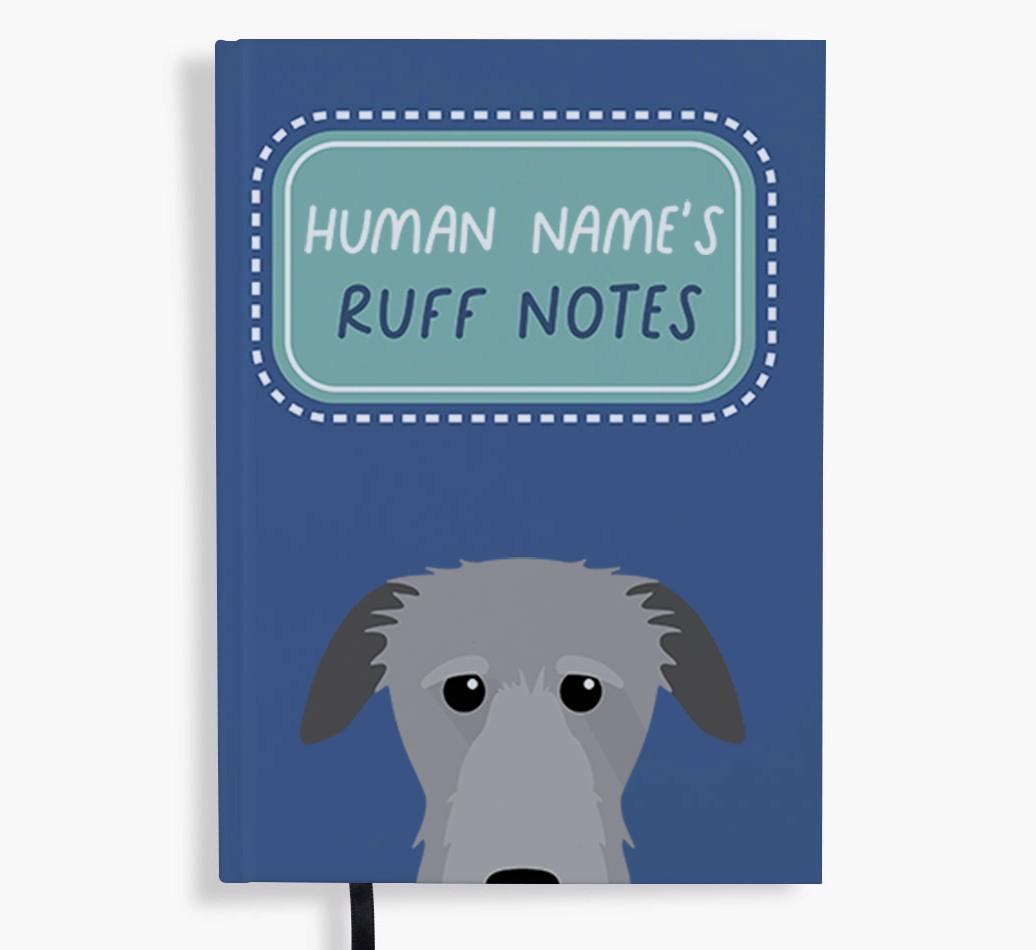 Starring Deerhound's cute icon and personalized with your name, this vibrant notebook may be a place for your ruff notes, but the cover will always look wagnificent!