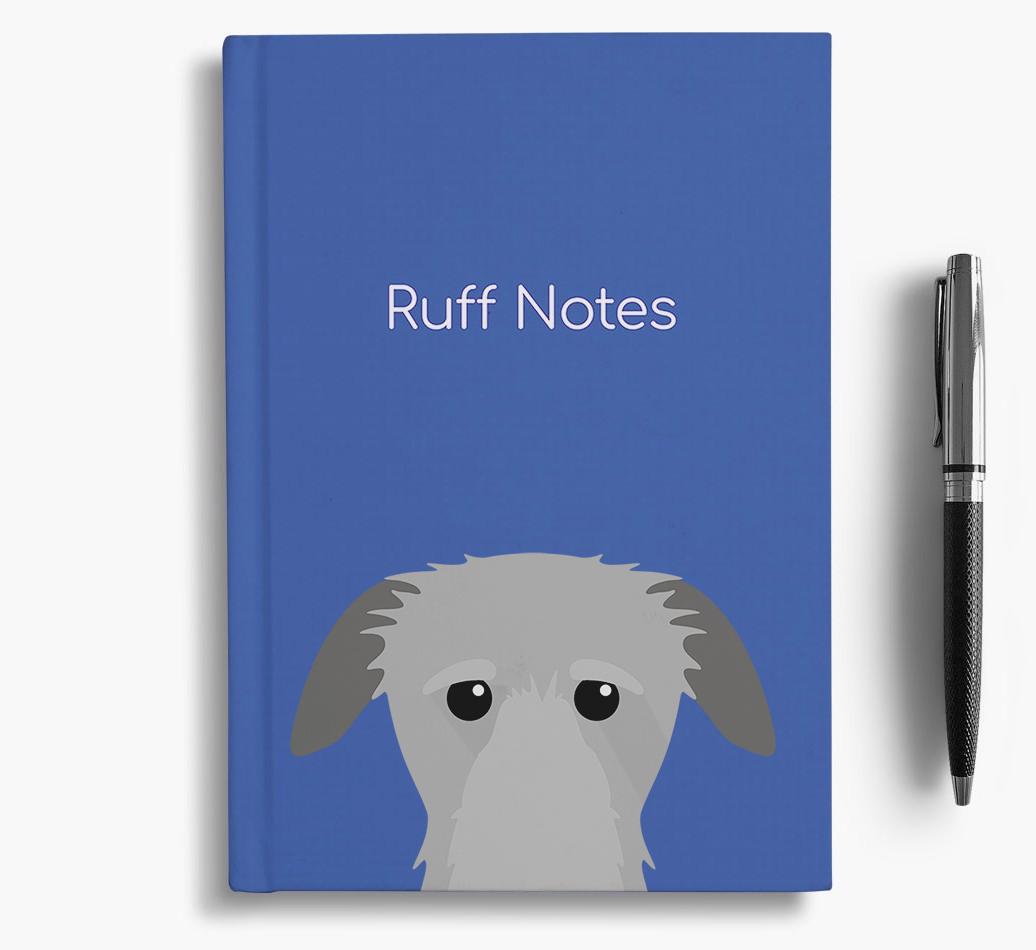 The front cover features our exclusive Deerhound peeking icon and is printed with the words, ‘Ruff Notes’, whilst the back is printed with the words ‘Live. Laugh. Woof.’.