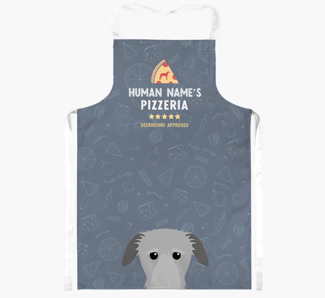 Featuring your furry friend's icon and lick of approval, plus your chosen human name, this apron is pawfect for anyone who considers themselves a pizza maestro in the kitchen. Available in a choice of 5 rustic colors, it'll make any Deerhound lover happy.