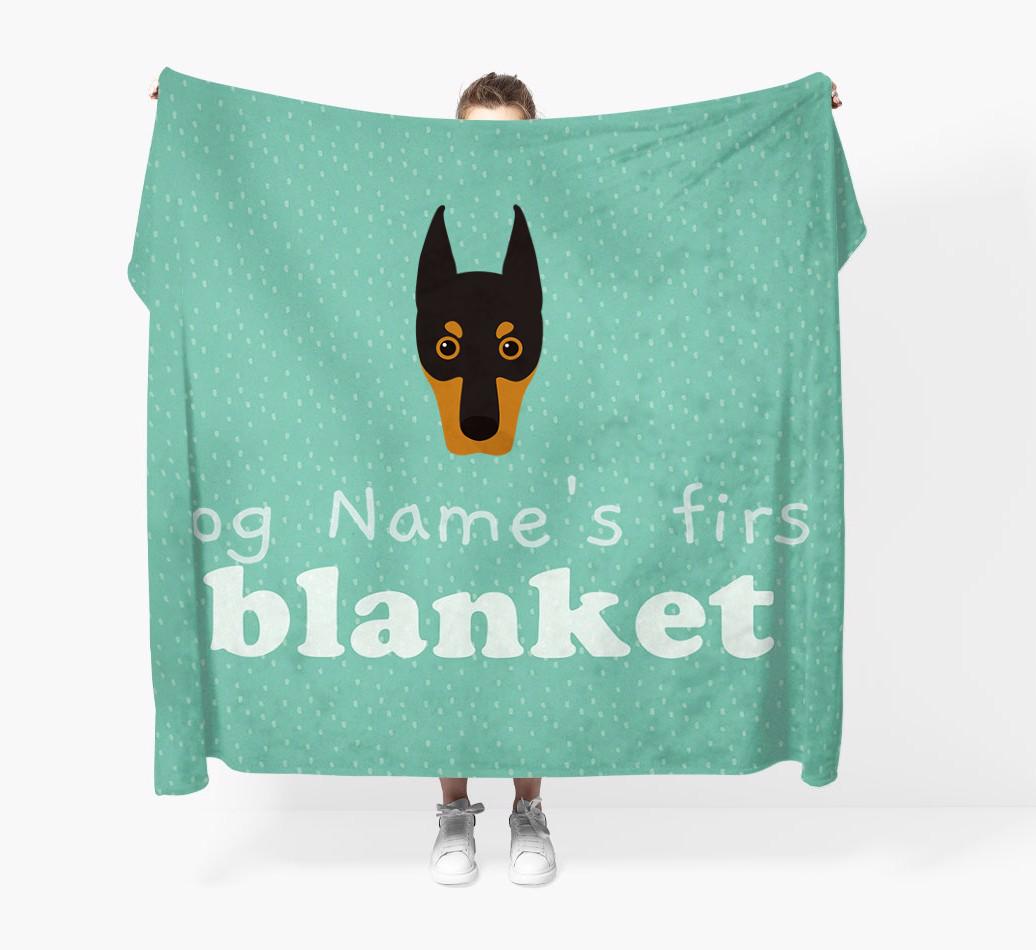 'Dog's First Blanket' - Personalized Dobermann Throw Blanket