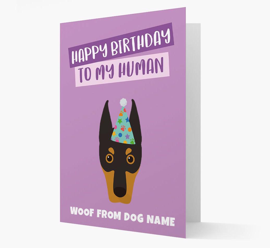 'Happy Birthday to My Human' - Personalized Dobermann Card