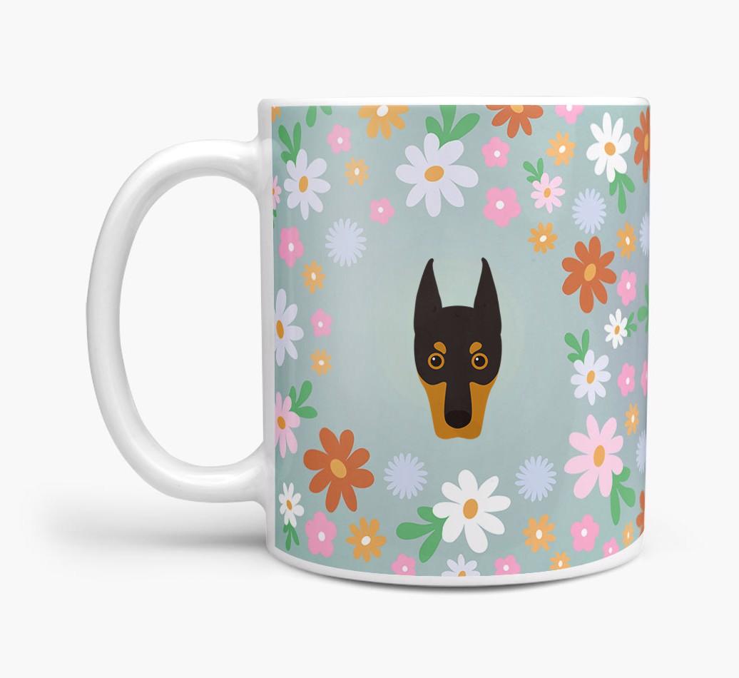Featuring a colorful bunch of flowers, this mug is printed with the words 'woofly grandma' on one side of the mug and your Dobermann's cute icon on the other. Bloomin' lovely!