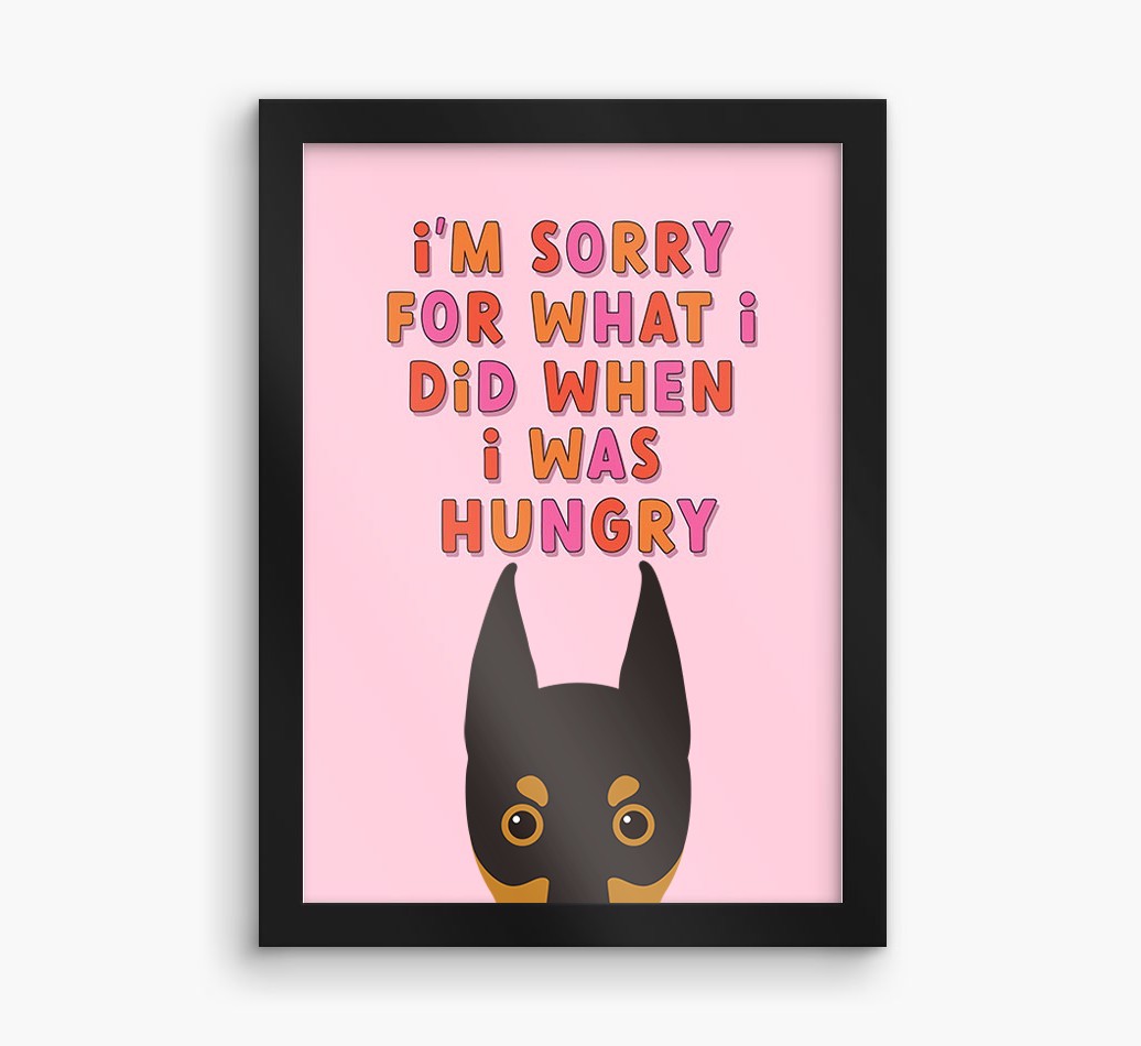 Does Dobermann turn into a hangry hound when they're hungry? Can you relate? With this print in the home, at least you'll always be reminded of how sorry your Dobermann is for their actions when they were hungry. Just look at this print and your Dobermann's cute face and all will be fur-given... Hopefully.