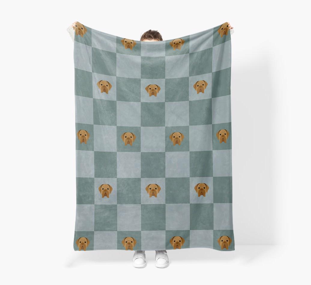 'Checkboard' - Personalized Dogue de Bordeaux Blanket: Premium Sherpa Fleece