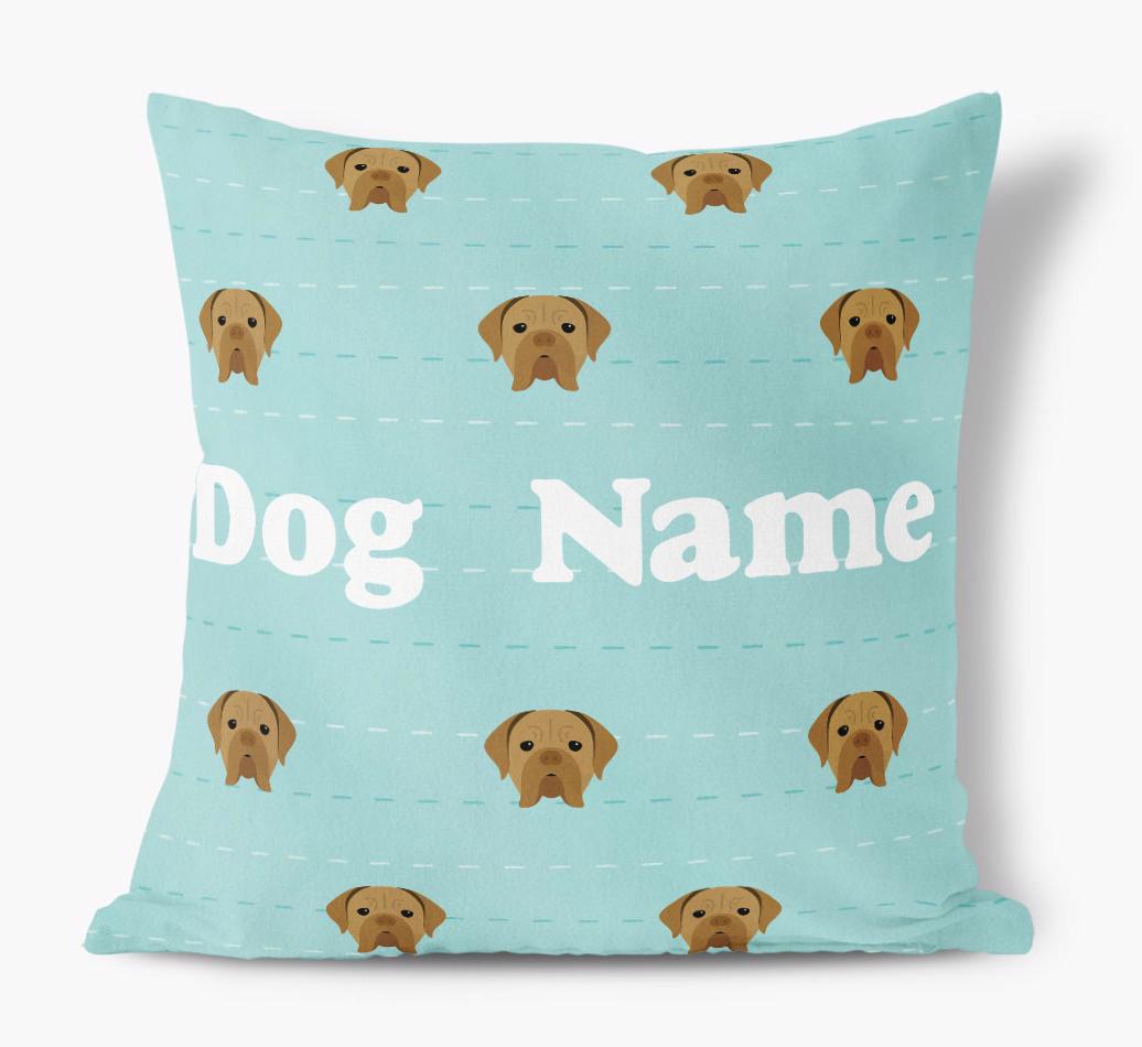 Featuring a furbulous Dogue de Bordeaux icon pattern, this pillow is available in six chic color-ways and is personalized with Your Dogue de Bordeaux's name.