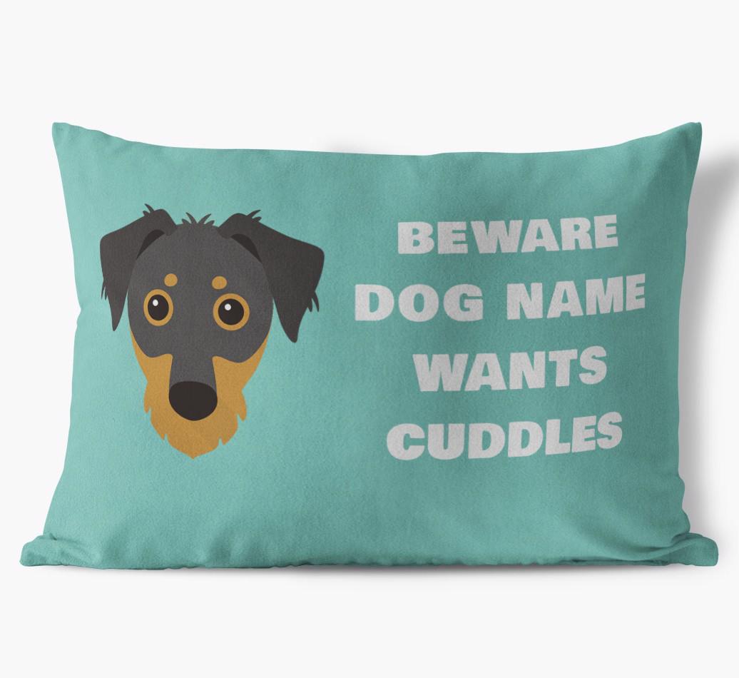 Beware of Cuddles: Personalized Dorkie Soft Touch Pillow