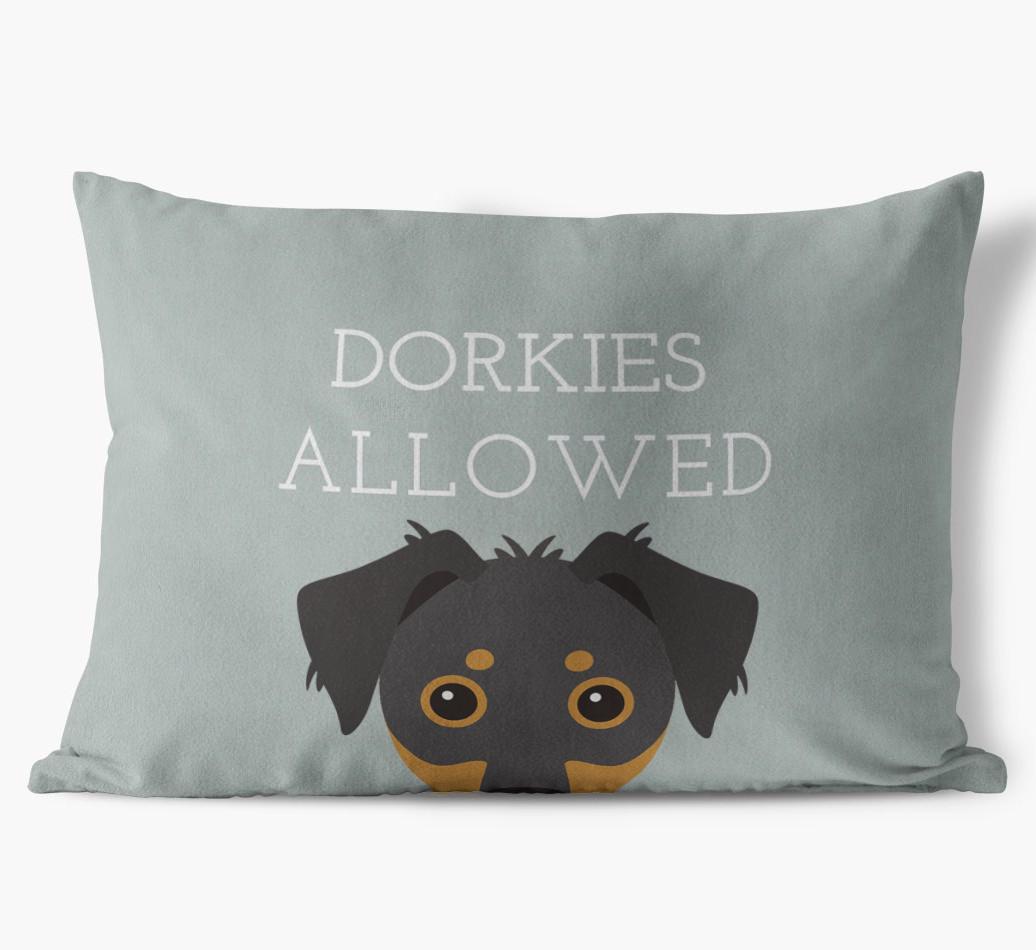 This exclusive, luxurious pillow is printed with the words ‘Dorkies Allowed’, which I’m sure Your Dorkie would definitely approve of.