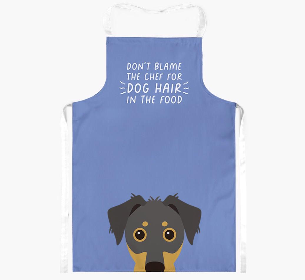 This funny apron will warn friends and family not to blame the chef for dog hairs in their food, they have Dorkie to thank for that!