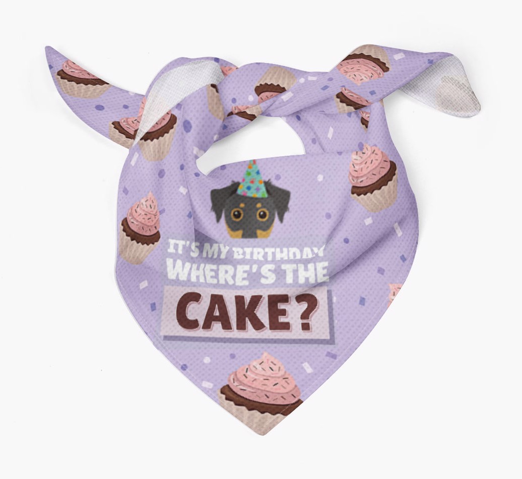 'Where's the Cake?' - Personalized Dorkie Birthday Bandana