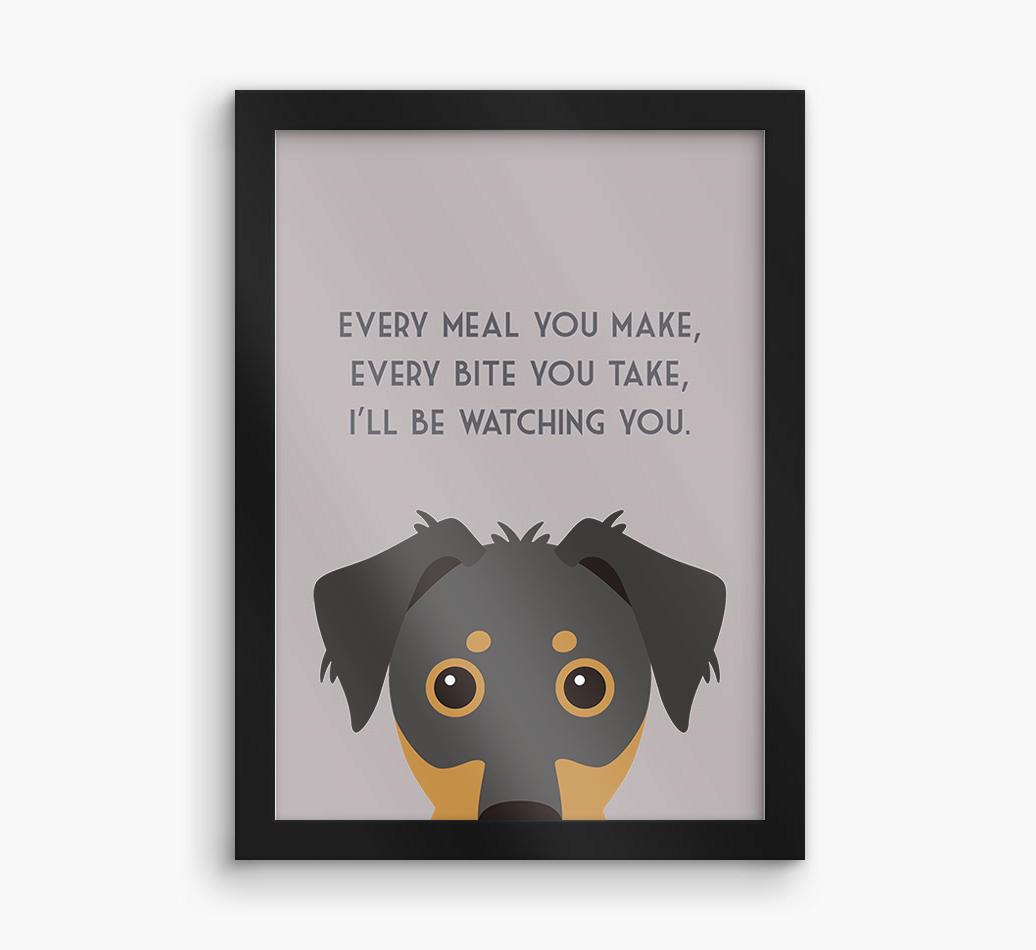 Printed with the words, ‘Every meal you make, every bite you take, I’ll be watching you’ and complete with our cute Dorkie peeking from the bottom of the design, this artwork will look great on display in the kitchen or anywhere Dorkie likes to watch you eat!
