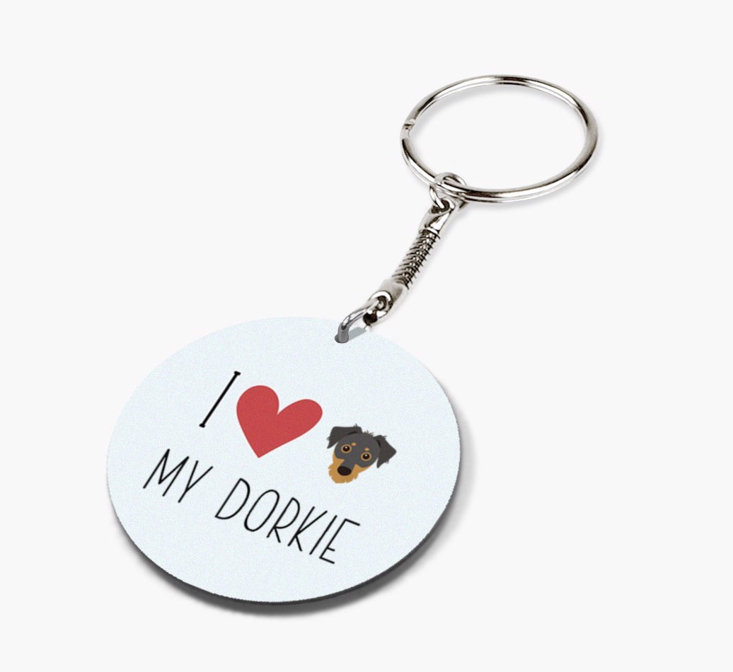 'I Heart My Dorkie' - Personalized Double-sided keychain with Dorkie Icon