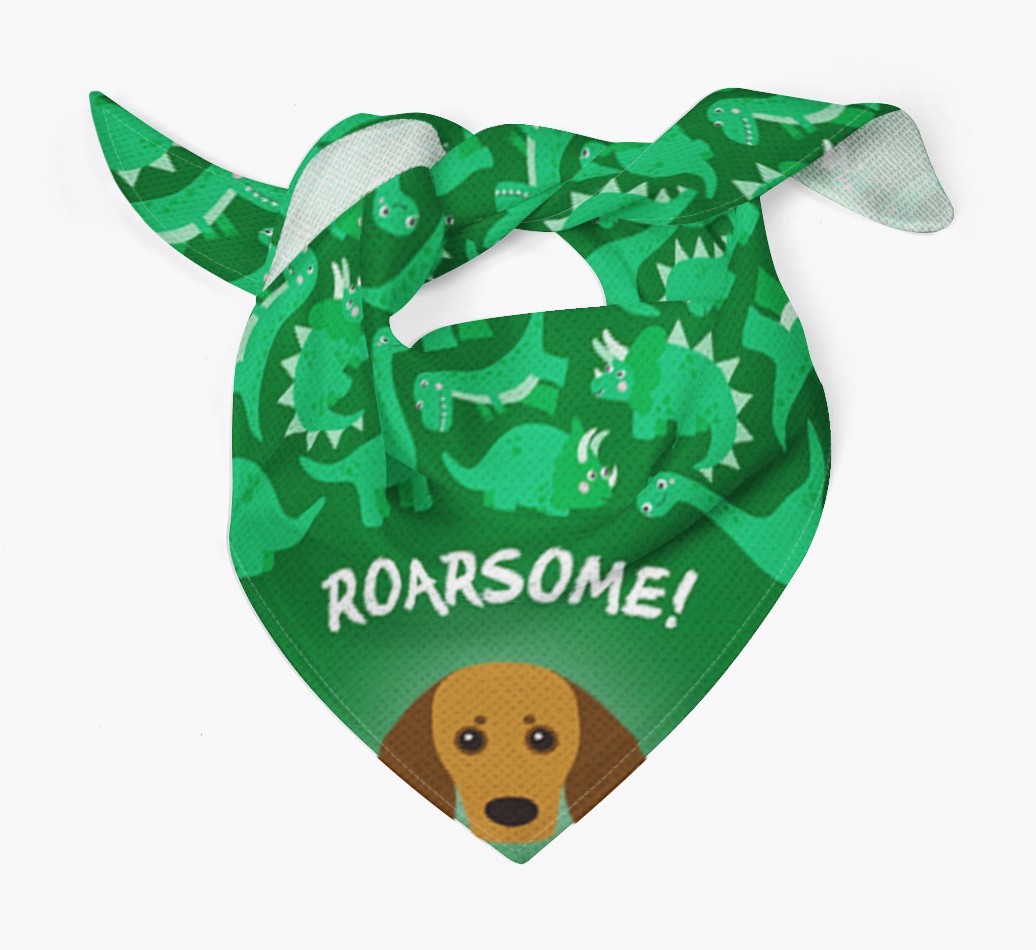 Personalized with Doxiepoo's icon and available in six vibrant colors, this bandana will make your Doodle look absolutely a-roar-able!