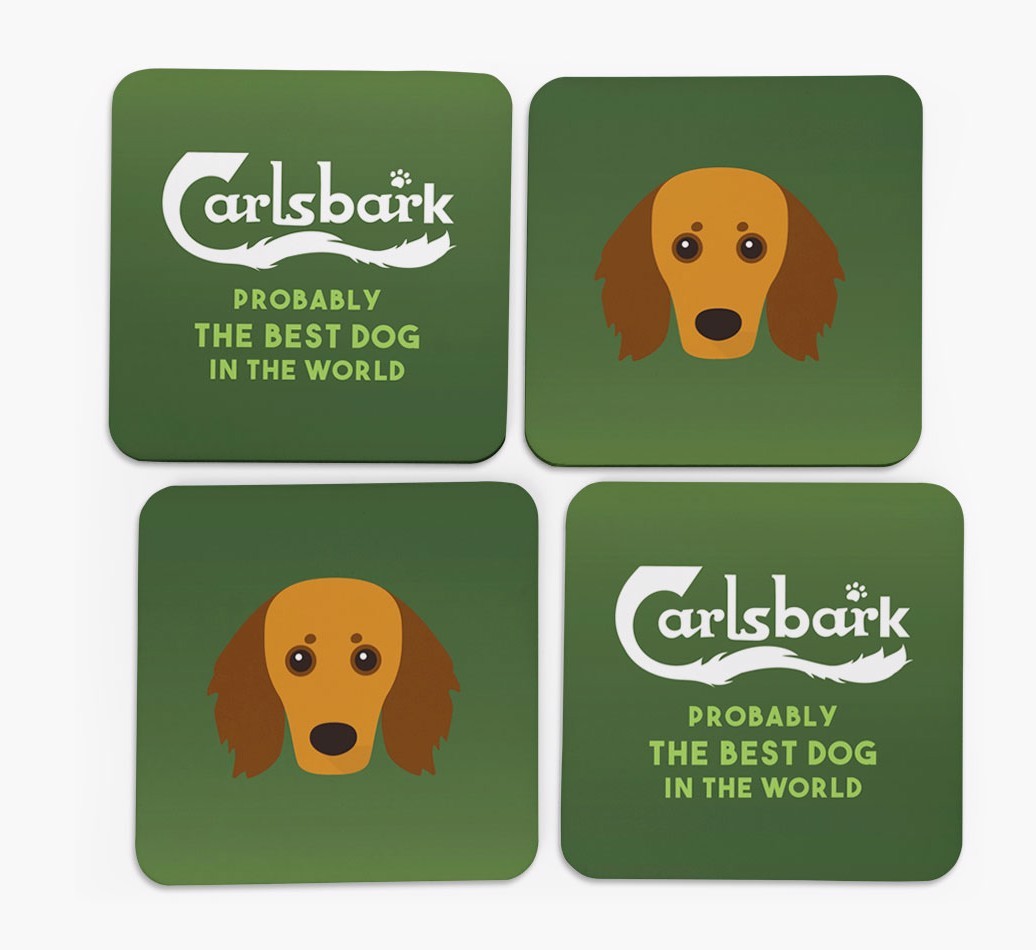 These coasters are pawfect for someone who loves their Carlsbark nearly as much as they love their Doxiepoo!