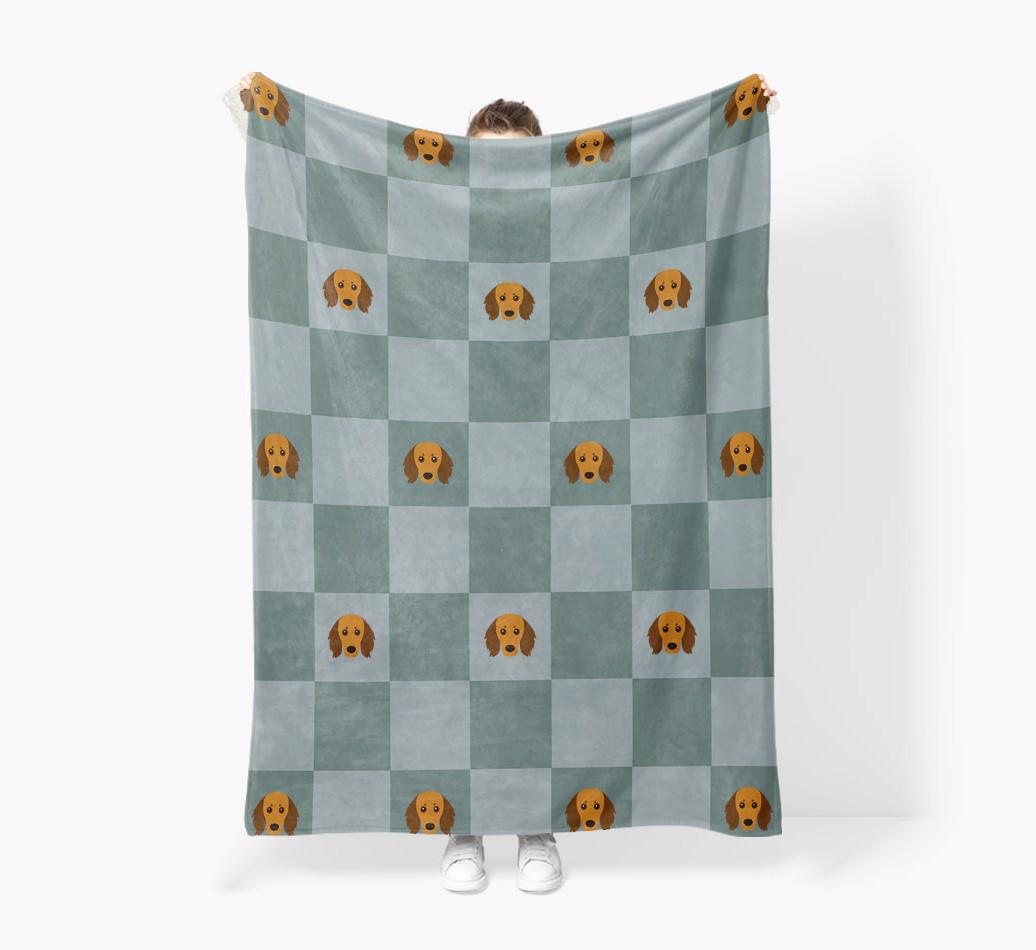 'Checkboard' - Personalized Doxiepoo Blanket: Premium Sherpa Fleece
