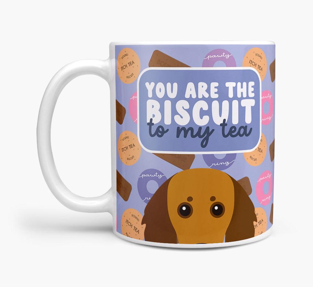 Featuring a cute biscuit motif paired with your Doodle's adorable face, this mug is bound to be a firm favorite in every household.