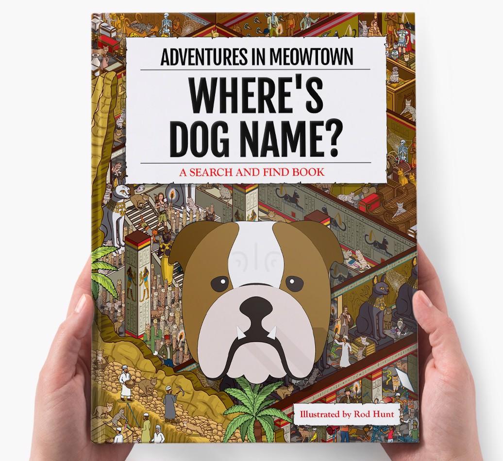Get ready to unleash your inner detective with our popular Search & Find book, ‘Where’s (insert dog name)?’ It’s the personalized dog book everyone’s yapping about! With twelve beautifully illustrated locations to explore, we challenge you to find your adventurous {breedShortName} on each action-packed page. Can you spot all the canine cameos and funny parodies too?