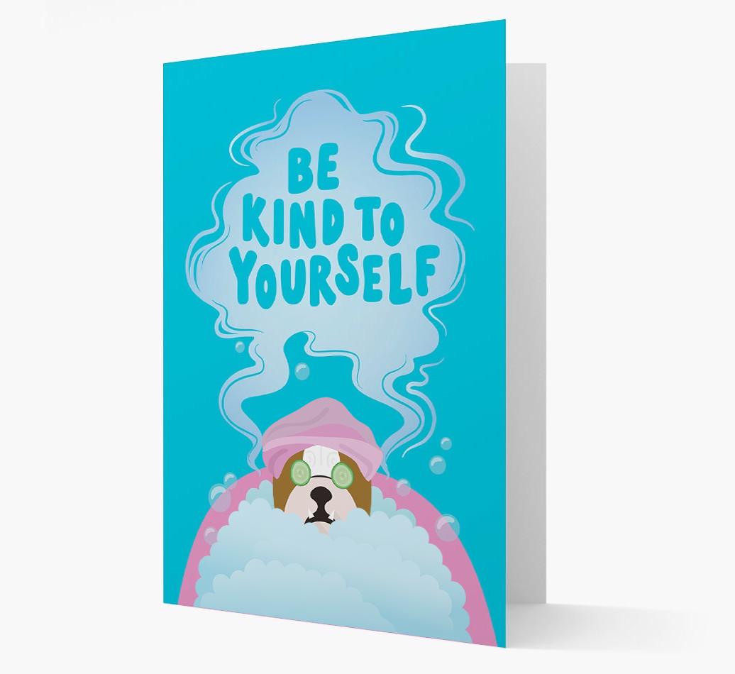 With this furbulous Bulldog design, featuring English Bulldog relaxing in a bath with the words ‘Be Kind To Yourself’, this card is the ulti-mutt way to let someone you love know that they need to chill!