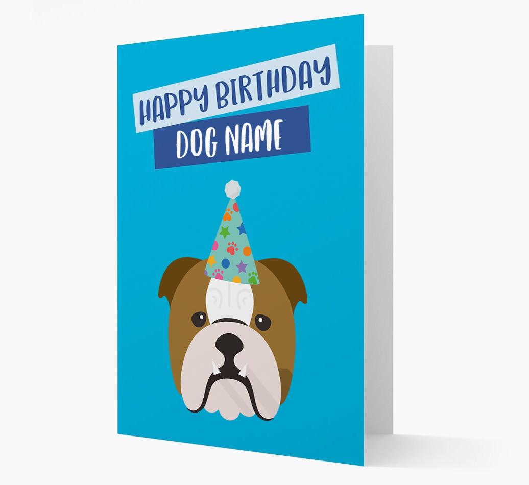 Why not wish Your Bulldog Happy Birthday in true pawty style with this party hat birthday card.