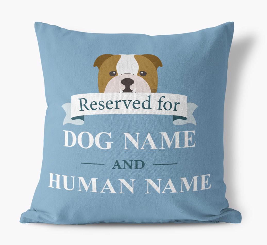 Personalized with your English Bulldog's icon and available in five rustic colors, this pillow will reserve you and your furry friend a place on the sofa whilst reminding everyone of your un-barkable bond!