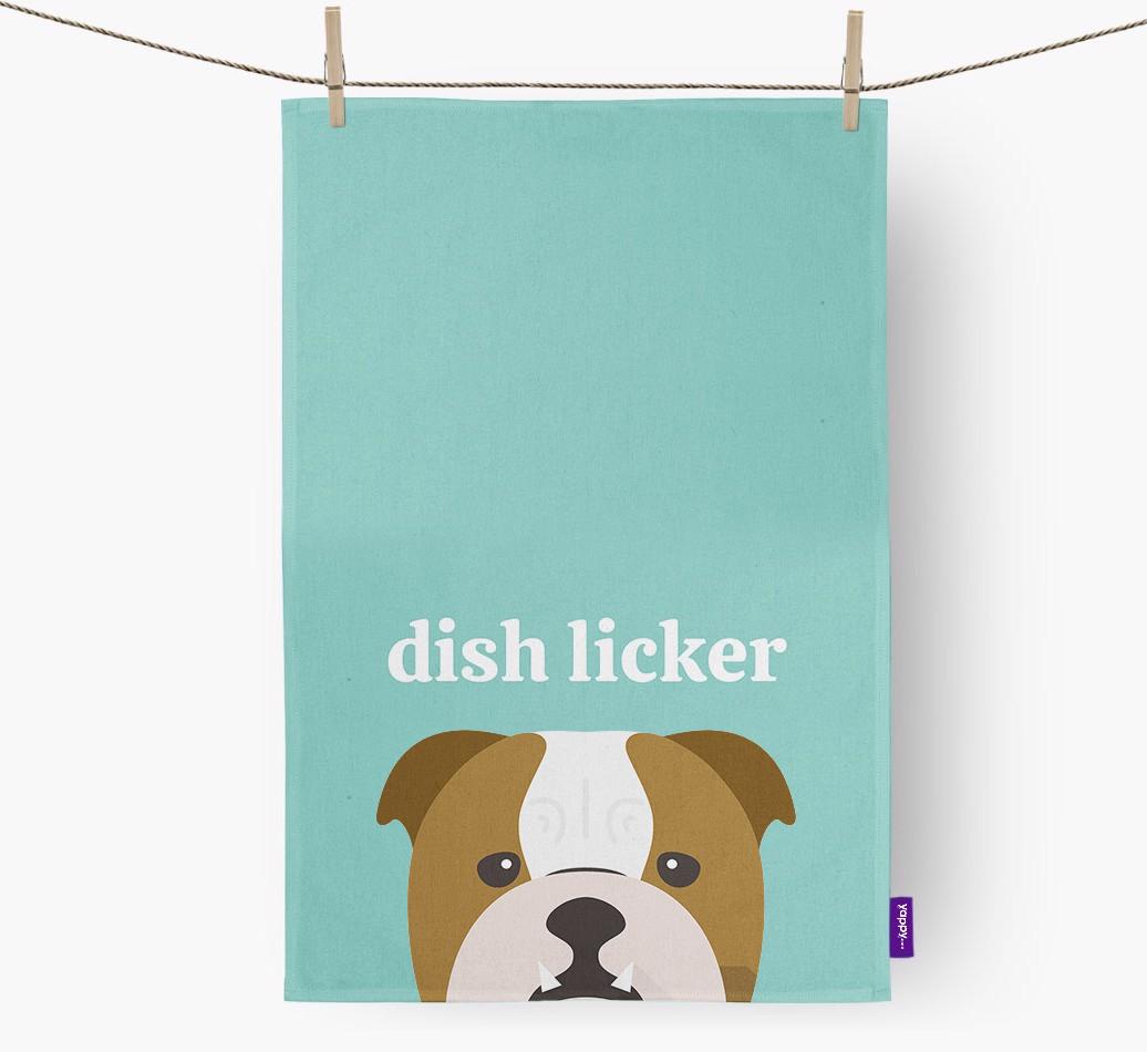 'Dish Licker' - Personalized English Bulldog Dish Towel