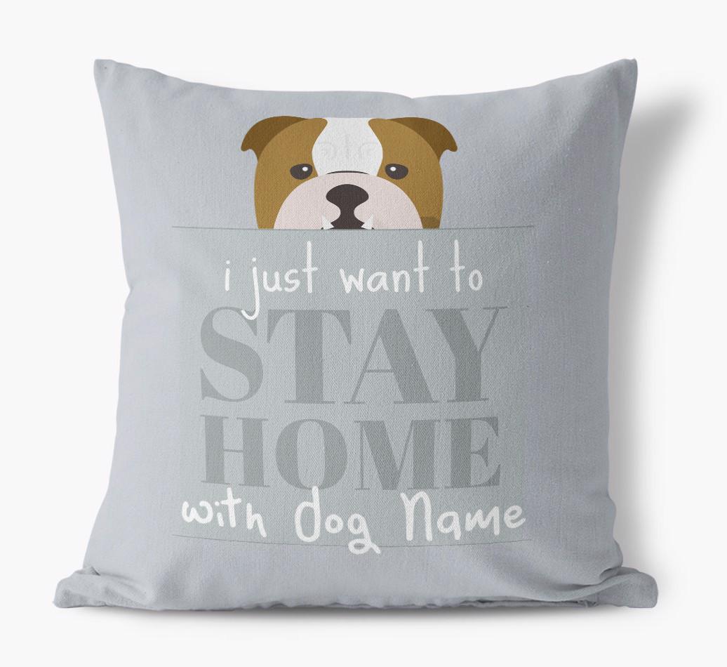 Stay Home: Personalized English Bulldog Canvas Pillow