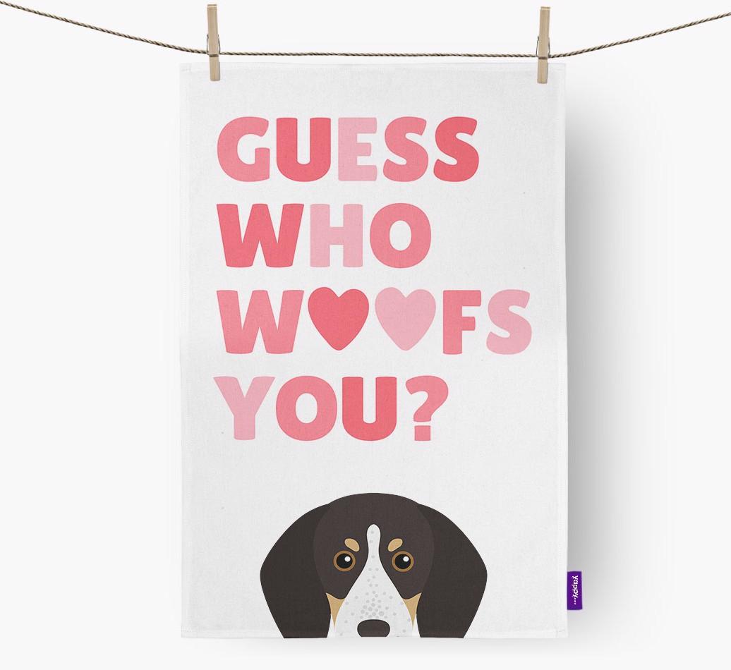 'Guess Who Woofs You?' - Personalized English Coonhound Dish Towel