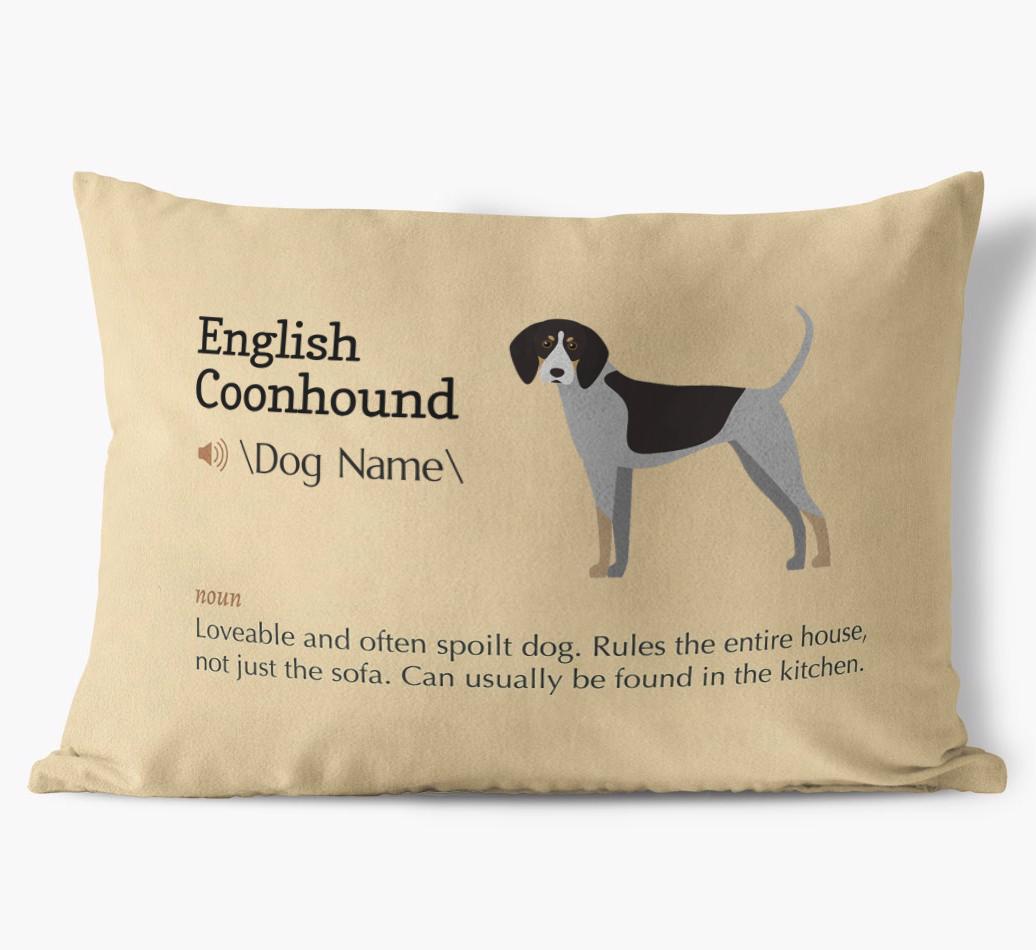 Personalized just for Your English Coonhound and featuring a unique English Coonhound definition and silhouette, this pillow truly is like no other.