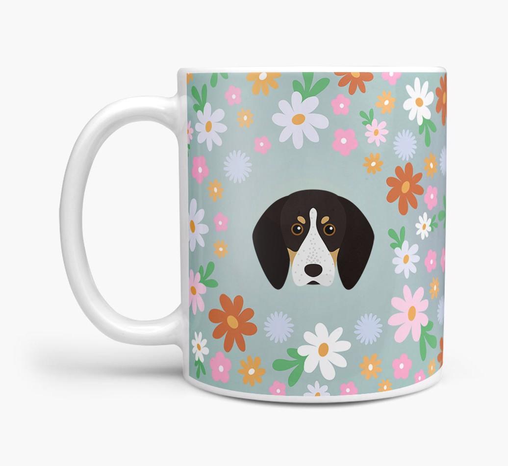 Featuring a colorful bunch of flowers, this mug is printed with the words 'woofly grandma' on one side of the mug and your Coonhound's cute icon on the other. Bloomin' lovely!