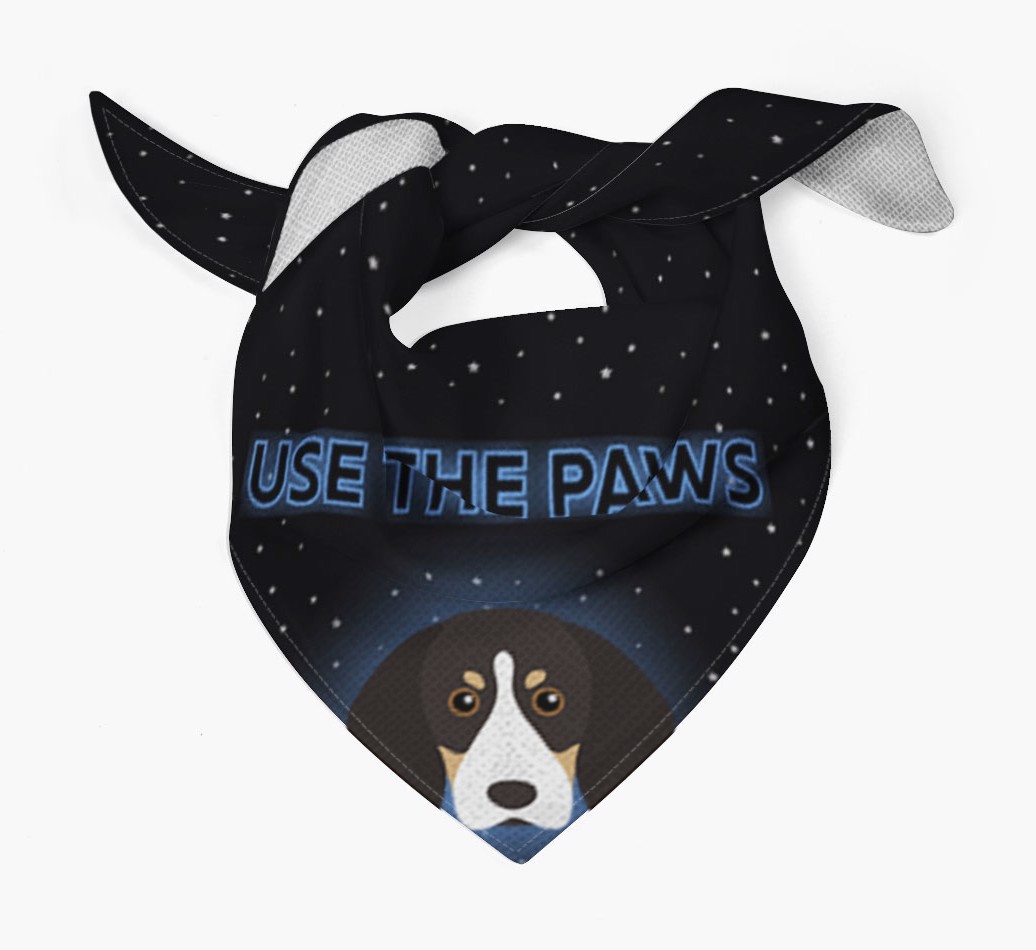 Featuring a starry night sky and glowing text, this bandana is made extra special with the addition of your Coonhound's cute icon.
